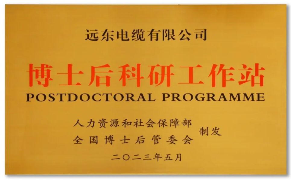 在國家各級博士后工作管理部門的大力支持和公司的高度重視下,遠(yuǎn)東電纜“博士后科研工作站”于2023年5月經(jīng)國家人事部、全國博士后管委會批準(zhǔn)設(shè)立,并于5月24日在“2023太湖人才峰會”開幕式上接受授牌。