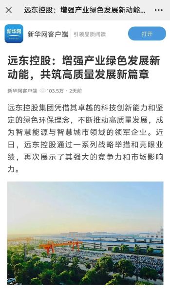 近日,新華網發布《遠東控股:增強產業綠色發展新動能,共筑高質量發展新篇章》,聚焦遠東控股集團如何堅定不移深耕智慧能源、智慧城市領域,受到廣泛關注。